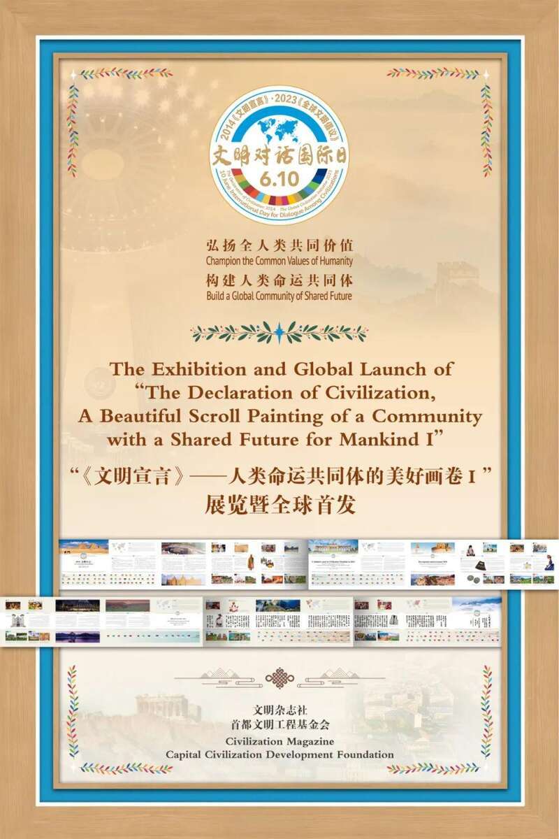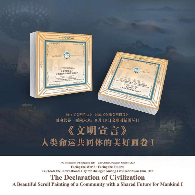2025年6月10日“文明对话国际日”,中国通过在纽约联合国总部和日内瓦、维也纳、内罗毕、曼谷、巴黎、海牙等地同时发布“《文明宣言》——人类命运共同体的美好画卷Ⅰ”暨举办“文明对话国际日:文明长卷Ⅰ主题展览”。