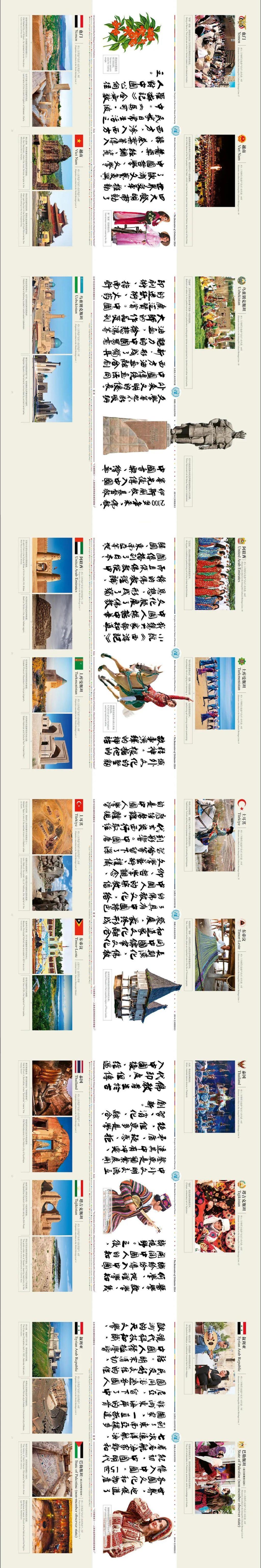 纵向“上部和下部”通过展示193个联合国会员国和2个联合国观察员国的世界遗产和非物质文化遗产经典图片,不但系统呈现出人类共同创造的文明标识体系、大美形态,而且见证了人类文明发展历程中蕴含的全人类共同价值和世界文明多样性的美好,深度诠释传播“2014《文明宣言》和2023《全球文明倡议》”推动人类文明发展进步的开创性时代意义。